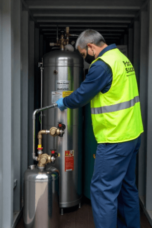 Professionele ontgassing is verplicht vóór openen, lossen of inspecteren volgens ARBO.